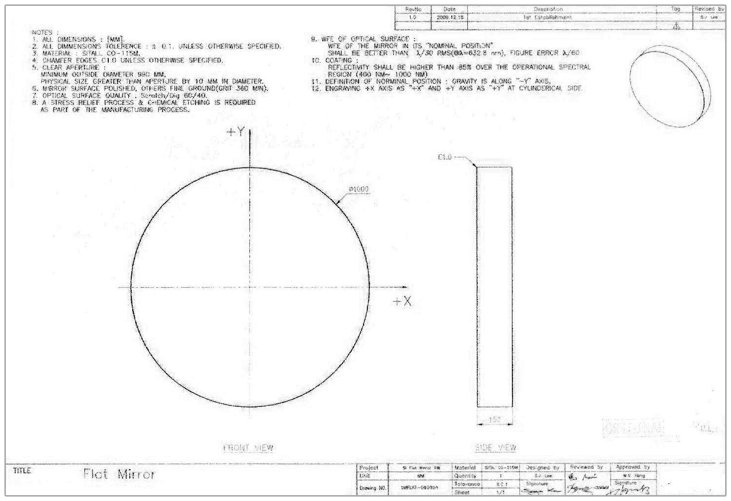 - 1.1 meter, .025 waves rms Zerodur Flat manufactured for KASI (Korea Astronomy Space Science Institute)