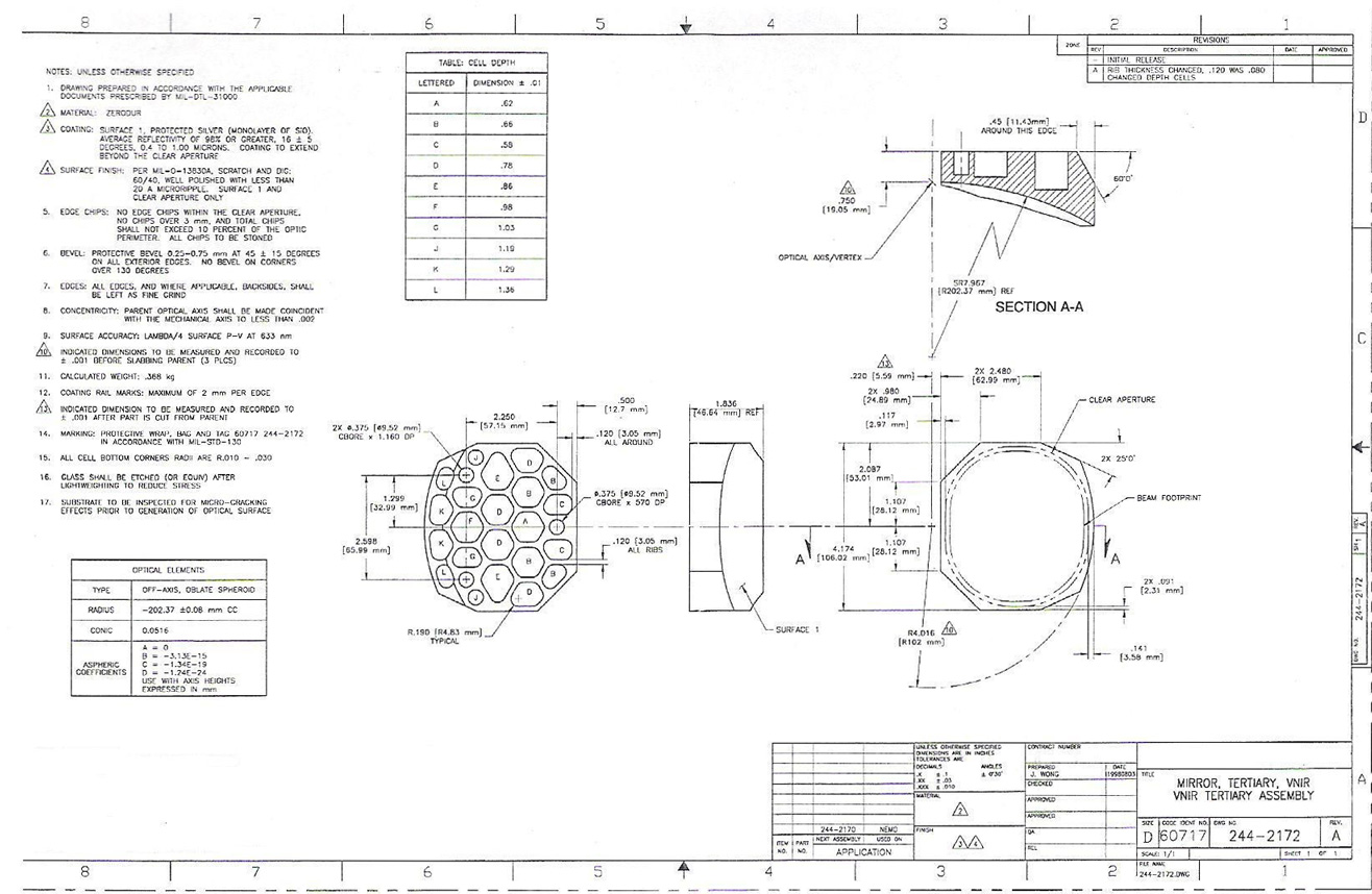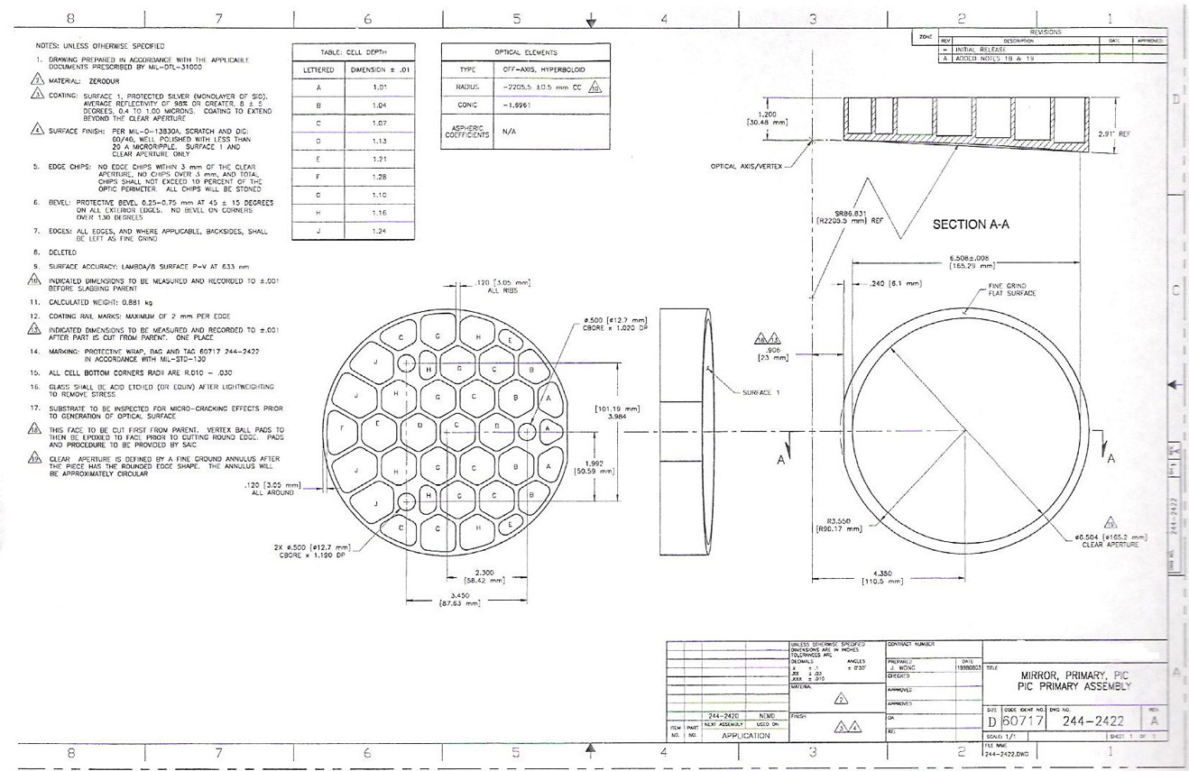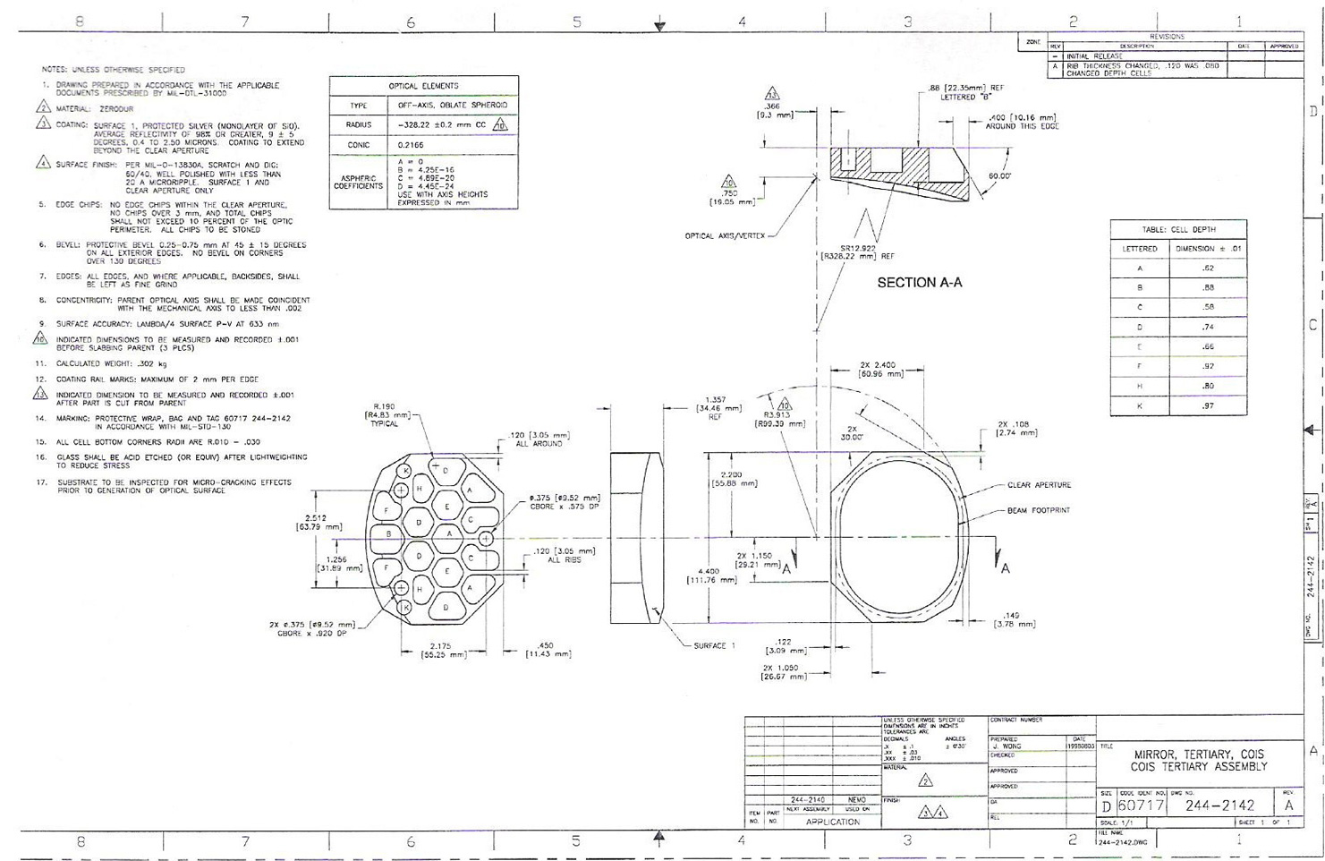 - 1 meter diameter by 10mm thick Zerodur meniscus with aspheric concave side mirror for JWST (James Webb Space Telescope) Program contracted through Ball Aerospace