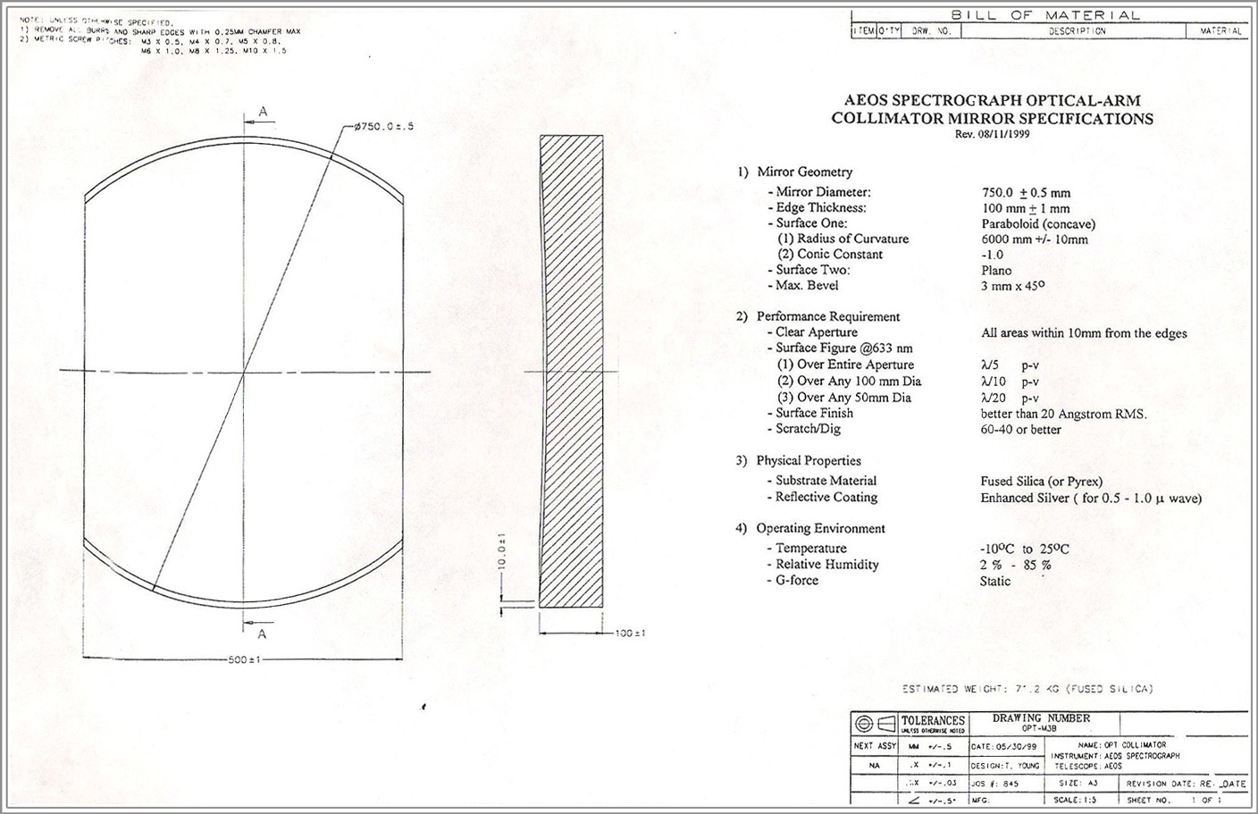 - Work completed on three large telescopes, correcting the hyperbolic mirrors to the parabolic primary on a 1.5 meter diameter scope and twin 48 inch tracking scopes. Correction was completed to star light on site, Maui satellite tracking station