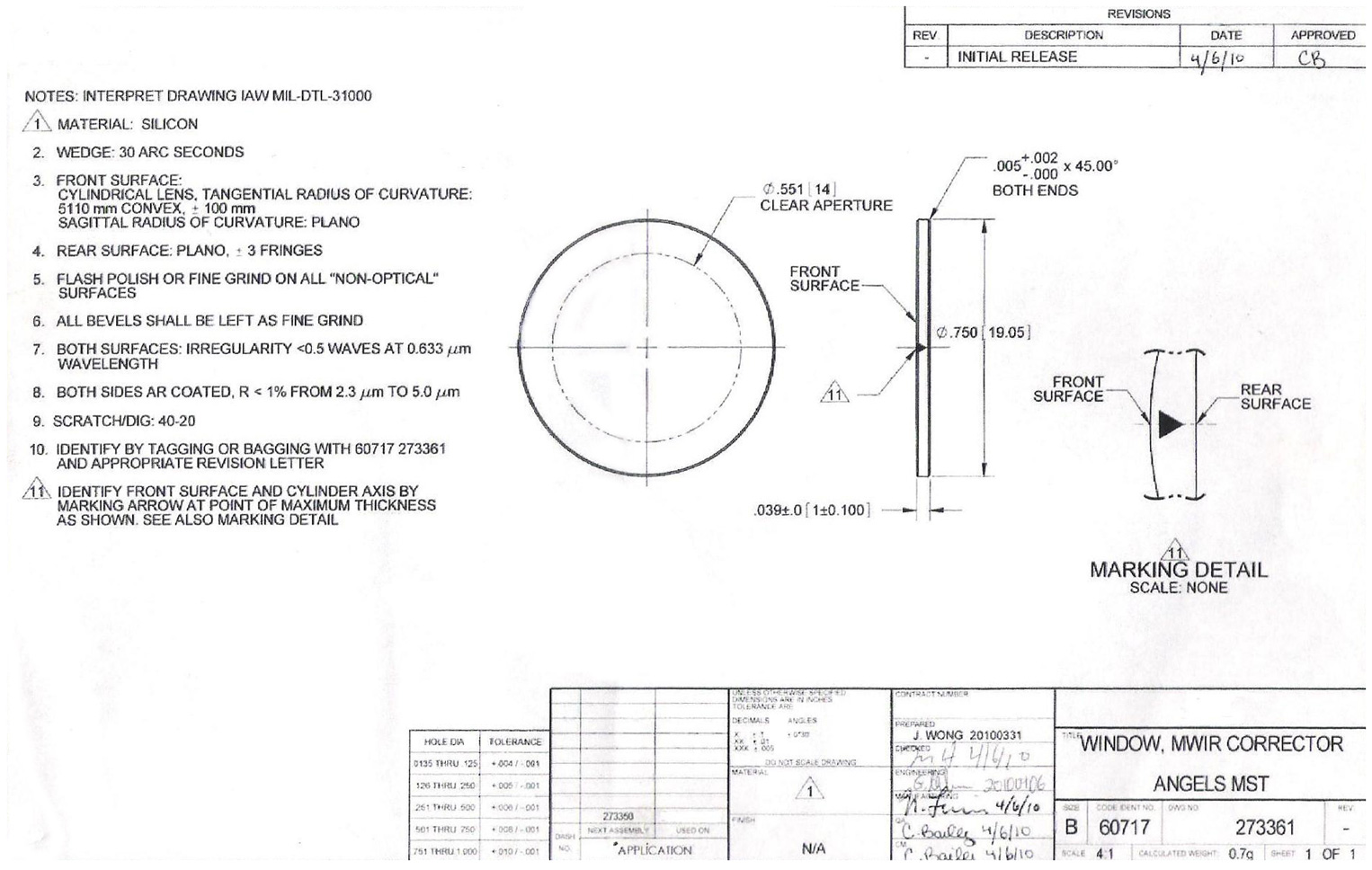 - Multiple systems of 3 inch, 4 inch flight qualified IR lenses from Si, Ge, ZnSe, CaF2 for complete systems manufactured for SAIC, San Diego, CA