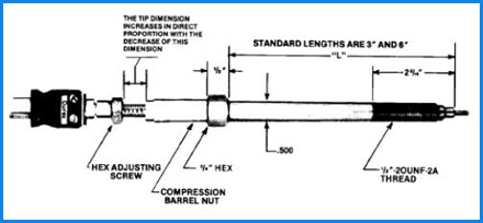 adjustable Plastic Melt Thermocouple has a movable probe actrivated