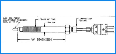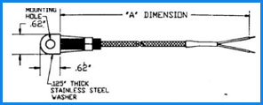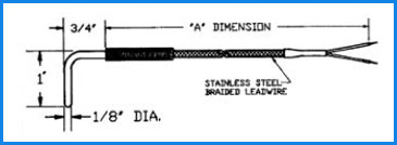 standard assembly consists of an 1/8" O.D. MgO insulated, type